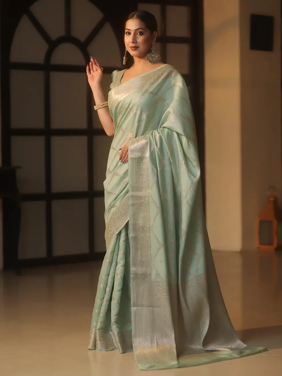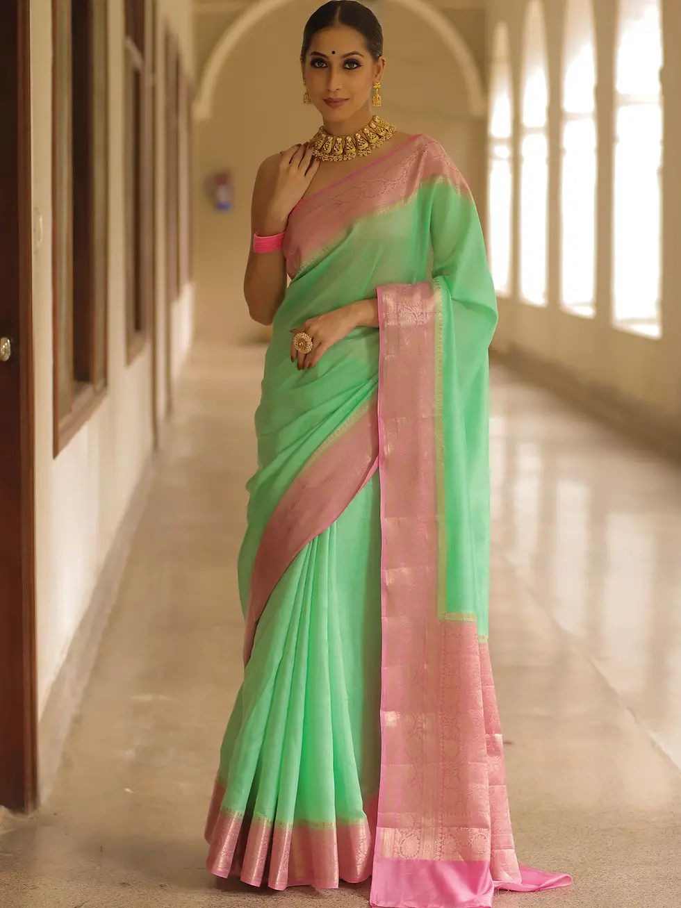 Pratima Banarasee Tissue Silk Saree PRM 9002 GR5 Green & Gold
